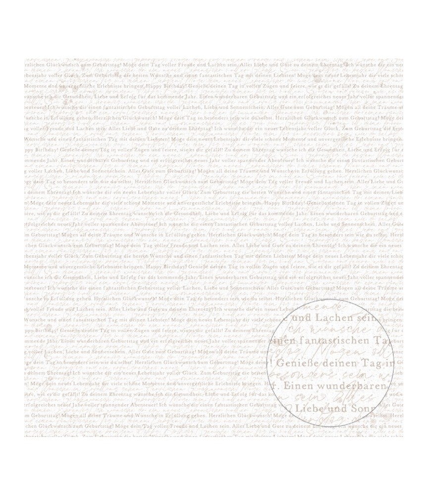Das Designpapier Scrapbooking Papier 'Geburtstags Text' - Charlie & Paulchen eignet sich hervorragend als Hintergrund für eine Karte oder für eine schöne Box. Grösse: 30.5 x 30.5 cm/ 225 gm² Grundfarbe offwhite