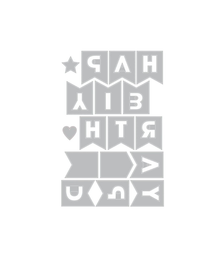 Stanzschablonen - HAPPY BIRTHDA Flaggen 17 Teile: Grösse ca. 2,54cm x 1,59cm - 0,95cm x 0,95cm