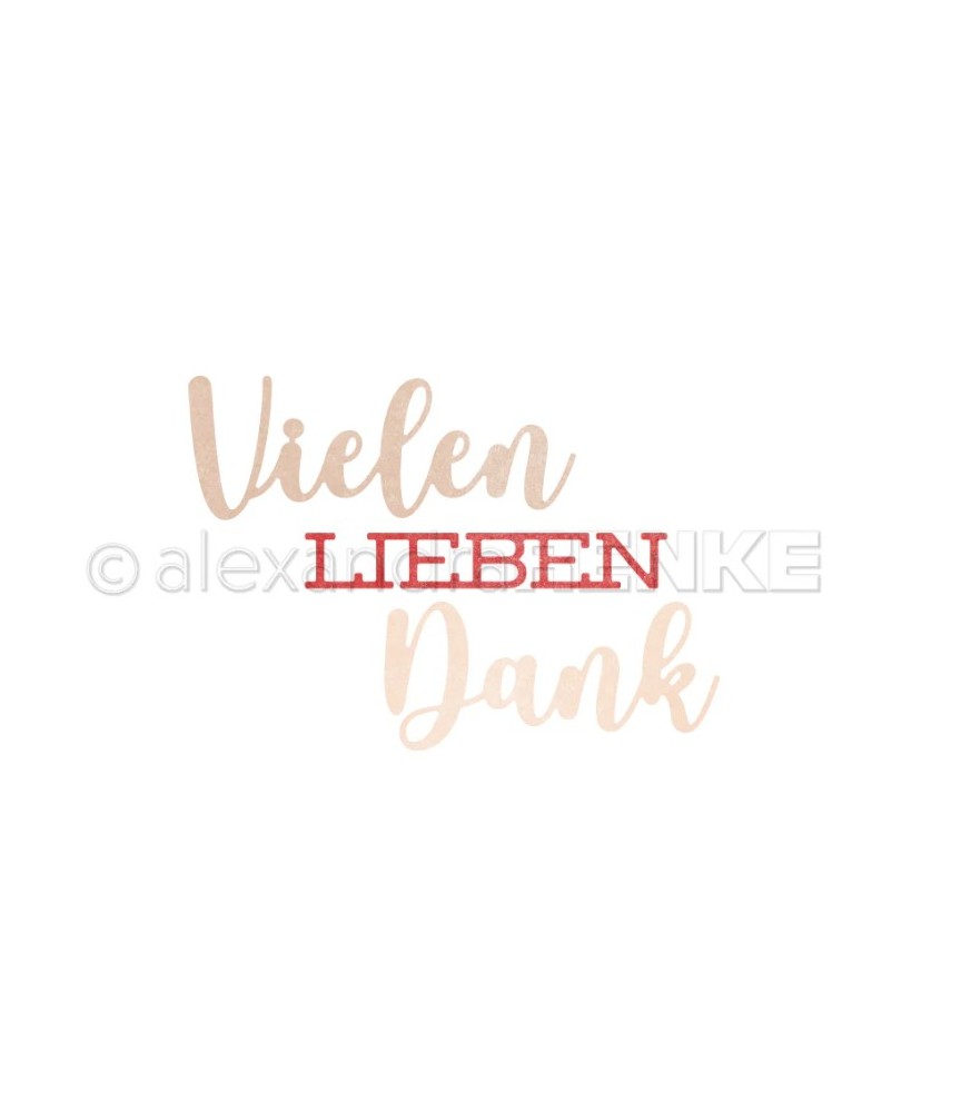 3 Stanzschablonen: Die Stanzschablone Vielen hat eine Grösse von ca.: 70 x 27 mm Dank hat eine Grössen von ca. 62 x 27 mm VIELEN hat eine Grössen von ca. 68 x 10 mm