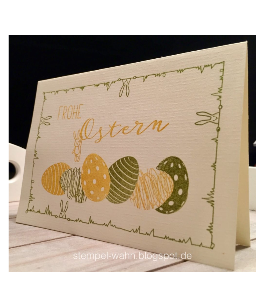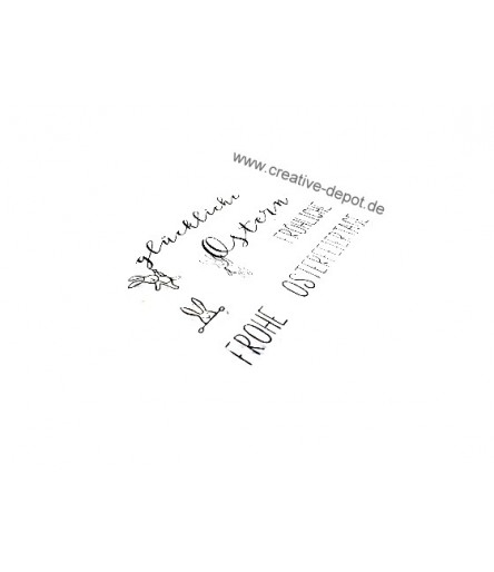 Das “Glückliche Ostergrüsse" Photopolymer Stempelset besteht aus 6 Stempeln auf einem A7 Sheet. Inhalt: glücklich mit Hase: ca. 7,81 x 2,83 cm