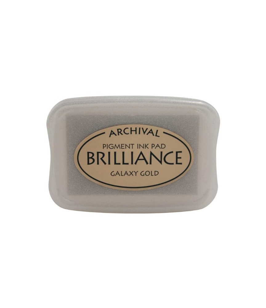 Brilliance Stempelkissen Galaxy Gold ist eine deckende Tinte auf Lösungsmittelbasis, die je nach Material innerhalb von 10 bis 15 Minuten trocknet. Die Tinte ist wasserfest, sodass Sie problemlos Schicht auf Schicht arbeiten können. Zudem ist die Tinte lichtbeständig (archival) und behält ihre ursprüngliche Farbe auch bei längerer Sonneneinstrahlung. Die Brilliance Tinte eignet sich für poröse Materialien wie Tonkarton, Hochglanzpapier, Transparentpapier, Fotos, Leder, Rohholz, Polymer Clay, Schrumpffolie und Terrakotta.