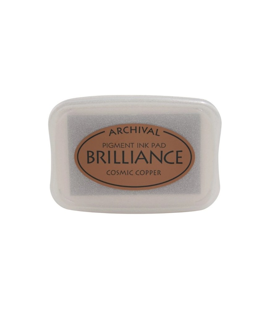 Brilliance Stempelkissen Galaxy Cosmic Copper von Tsukineko Japan ist eine deckende Tinte auf Lösungsmittelbasis, die je nach Material innerhalb von 10 bis 15 Minuten trocknet. Die Tinte ist wasserfest, sodass Sie problemlos Schicht auf Schicht arbeiten können. Zudem ist die Tinte lichtbeständig (archival) und behält ihre ursprüngliche Farbe auch bei längerer Sonneneinstrahlung. Die Brilliance Tinte eignet sich für poröse Materialien wie Tonkarton, Hochglanzpapier, Transparentpapier, Fotos, Leder, Rohholz, Polymer Clay, Schrumpffolie und Terrakotta.