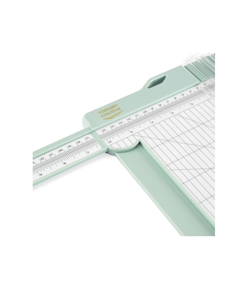 Die Papierschneidemaschine und Falzbrett in Einem (in cm & inch) verfügt über einen ausklappbaren Arm, so dass Sie ein Blatt bis zu einer Länge von 43cm / 17" und einer Höhe von 31 cm einlegen und zuschneiden oder falzen können. Das Falztool muss während dem Schneiden nicht aus der Maschine entfernt werden (gilt auch umgekehrt).