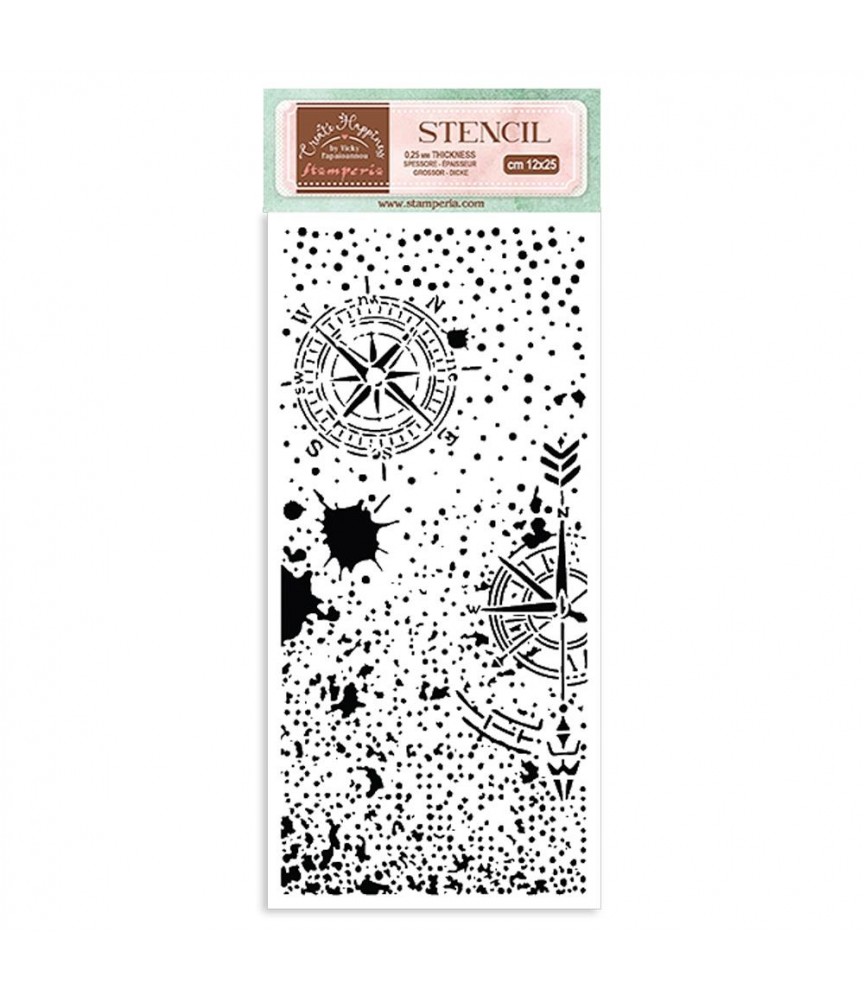 Stencil Schablone mit Kompass für Hintergründe und Scrappbooking. Grösse: ca. 12 x 25 cm