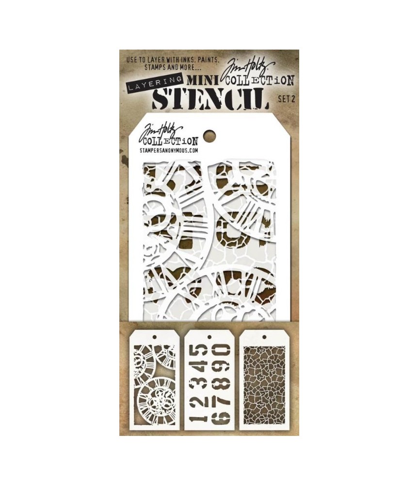 Stencil Schablonen Mini Set Nr. 3 - Tim Holtz Die Stencil Schablone eignet sich für: 3 div. Schablonen Grösse: ca. 8 x 15 cm