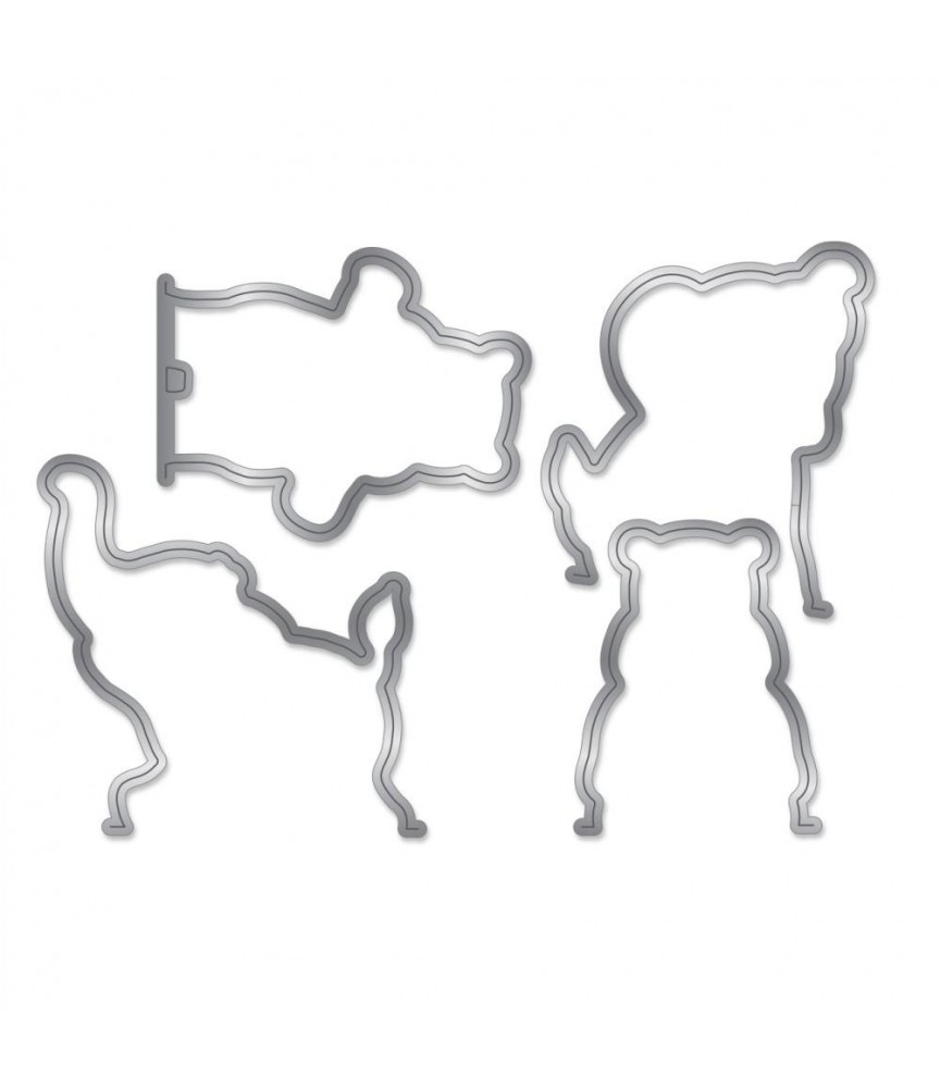 Dieses Set beinhaltet 4 Stanzschablonen und 9 Silikonstempel. Die Stanzformen wurden so entworfen, dass sie nicht entlang der unteren Kanten schneiden. Die grösste Stanzschablone misst ca. 4.8 x 4.3 cm.