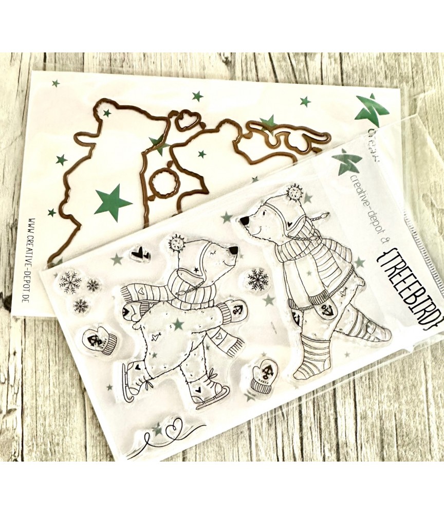 Das Stempelset “Winterbären" besteht aus einem 8-teiligem Silikon Stempelset auf einem A6 Sheet und einem 10-teiligem Stanzen Set
