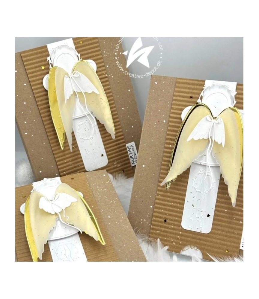 Cut & Emboss Folder Klappkarte Engelsflügel geöffnet (ca. 7,9 x 20,0 cm)