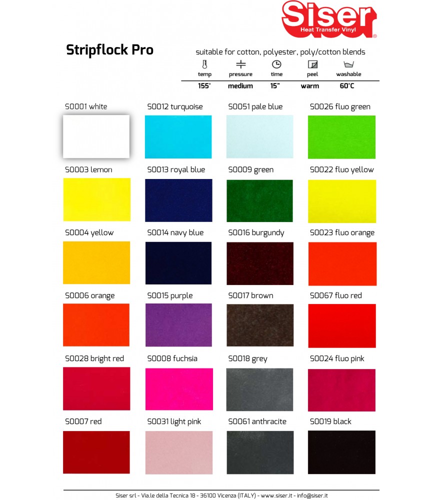 For many years, Siser Stripflock® Pro has been one of the best known flock heat transfer films for cotton, polyester and blended fabrics. Siser Stripflock® Pro Flock Film can be easily processed with all commercially available cutting plotters.