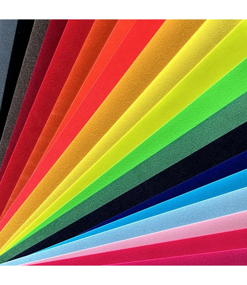 The flock foil has a very evenly structured, velvety soft surface. Siser Stripflock Pro® flock foil is suitable for multi-layer applications, but may only be used as the top layer. Due to the variety of colors, fancy designs can also be created in combination with flex films (for example in a multi-layer process). Stripflock® Pro flock foil is widely used in international league sports. After pressing and washing, it is exceptionally soft.