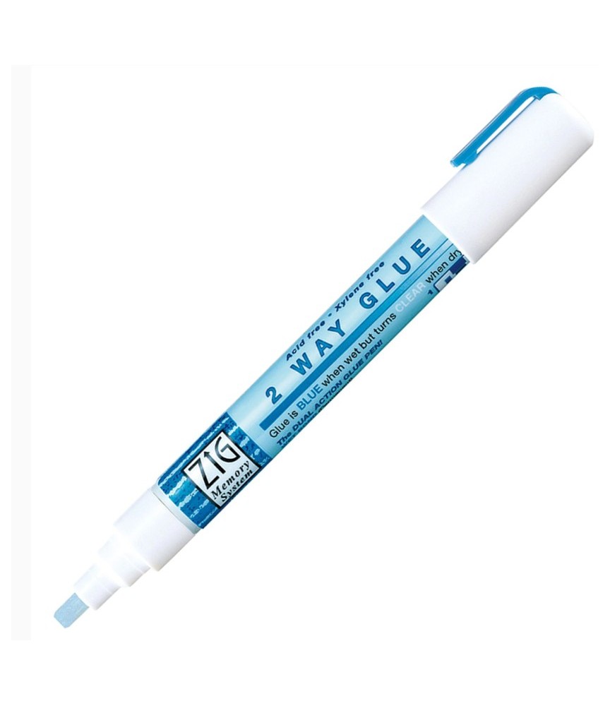 Klebestift 2-way Glue Pen fine Tip. Dieser Klebstift macht selbst das Aufkleben von kleinen gestanzten Motiven und Schriften kinderleicht. Mit der ca. 3 mm dicken Spitze ist sauberes Arbeiten kein Problem mehr. Nur wenig auftragen und warten bis der Leim sich klar verfärbt, danach klebt es "wiederablösbar", wie ein Post-It-Notizzettel.