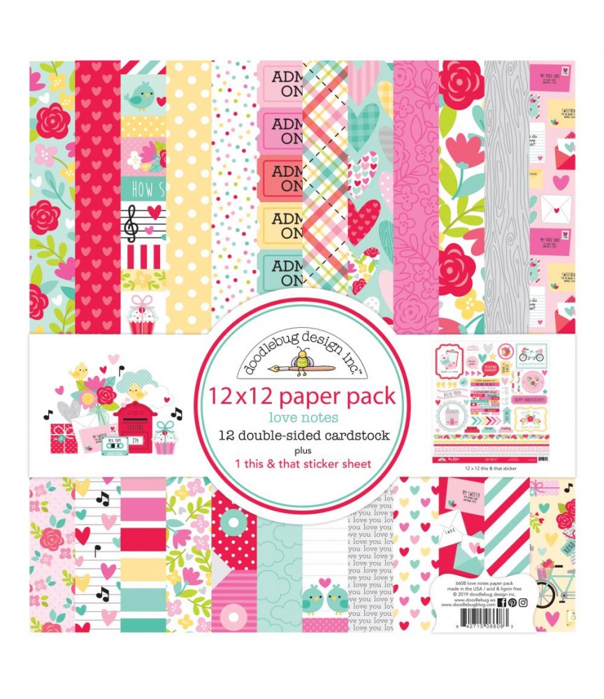 Scrapbooking Papier Love Notes, 12" x 12" - Doodlebug Design