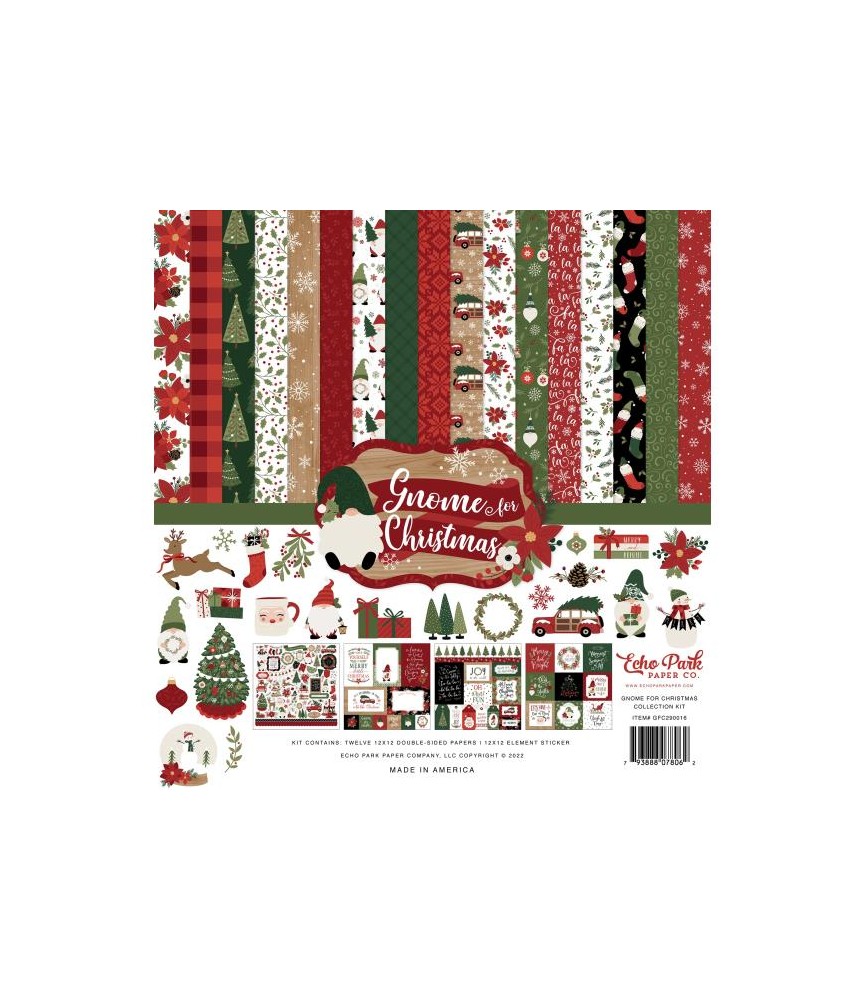 Scrapbooking Papier Gnome for Christmas, 12" x 12" - Echo Park