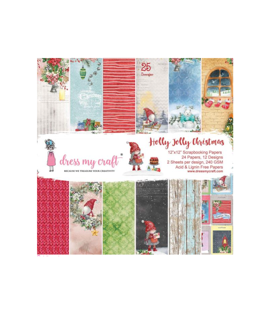 Scrapbooking Papier Holly Jolly Christmas, 12x12" - Dress my Craft