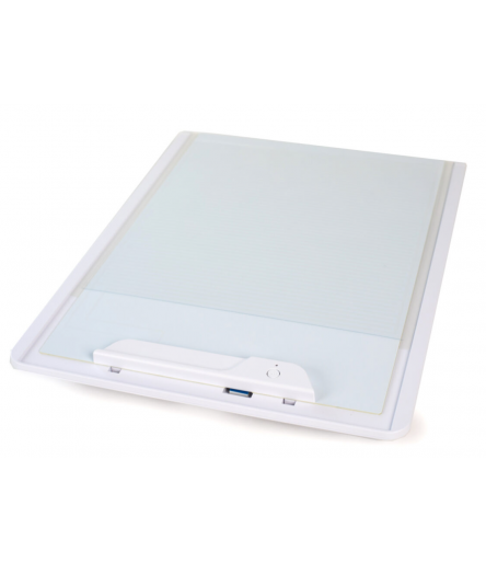 Appuyez sur le bouton de mise en marche du tapis ES, attendez quelques instants qu'il se charge, puis lissez le tapis de protection et le support de sorte qu'il n'y ait pas de bulles d'air. Les supports sont sécurisés par aspiration électrostatique.