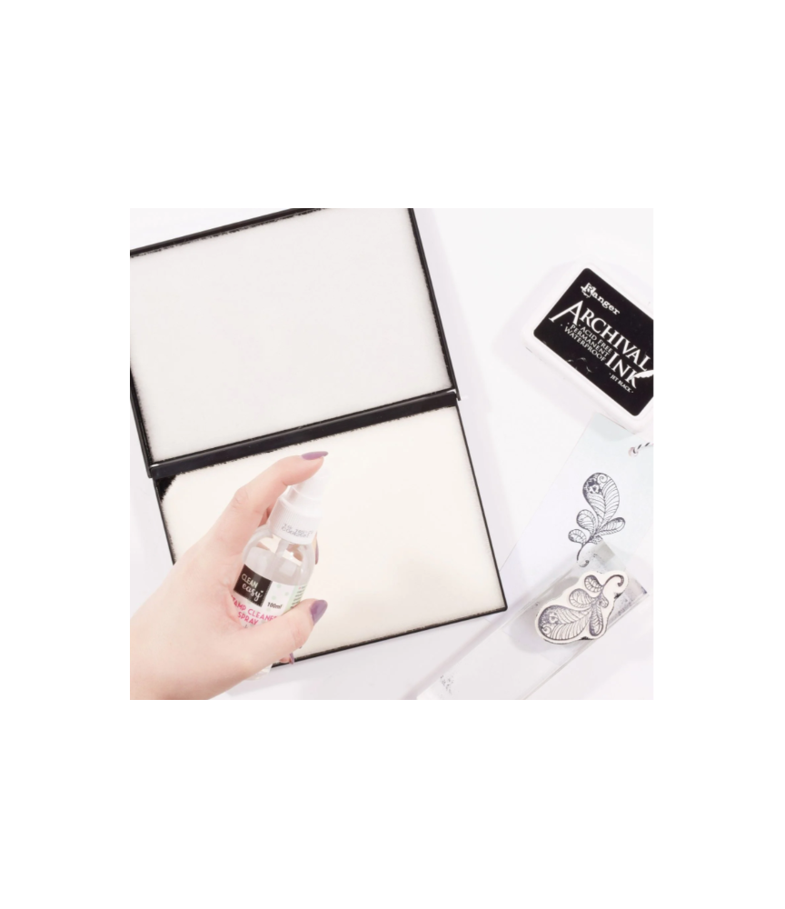Cette double boîte de nettoyage pour tampons permet un nettoyage en profondeur et facile des tampons usagés, mais aussi des rouleaux encreurs, des blocs acryliques et des plaques d'impression gel. Vaporisez le nettoyant pour tampons sur le tapis de nettoyage pour tampons / tapis de nettoyage d'un côté. Passez le tampon plusieurs fois dessus. Séchez ensuite le tampon de l'autre côté.