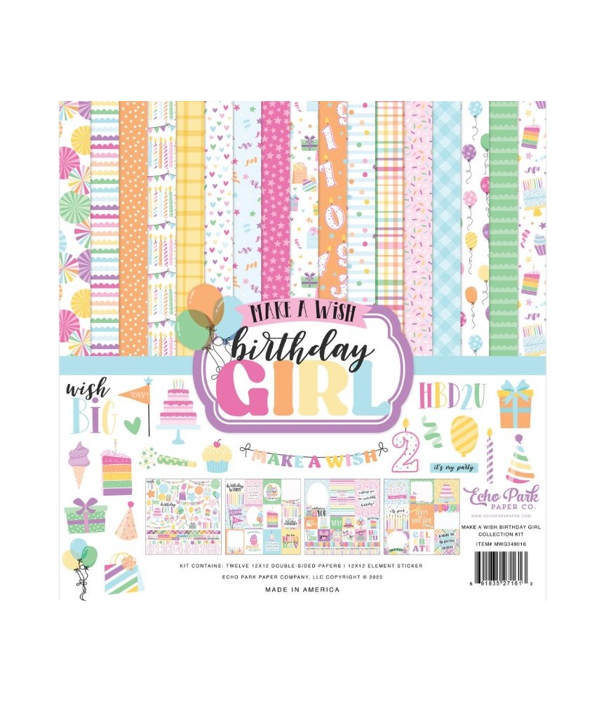 Scrapbooking Papier Make a Wish Birthday Girl 12" x 12" - Echo Park